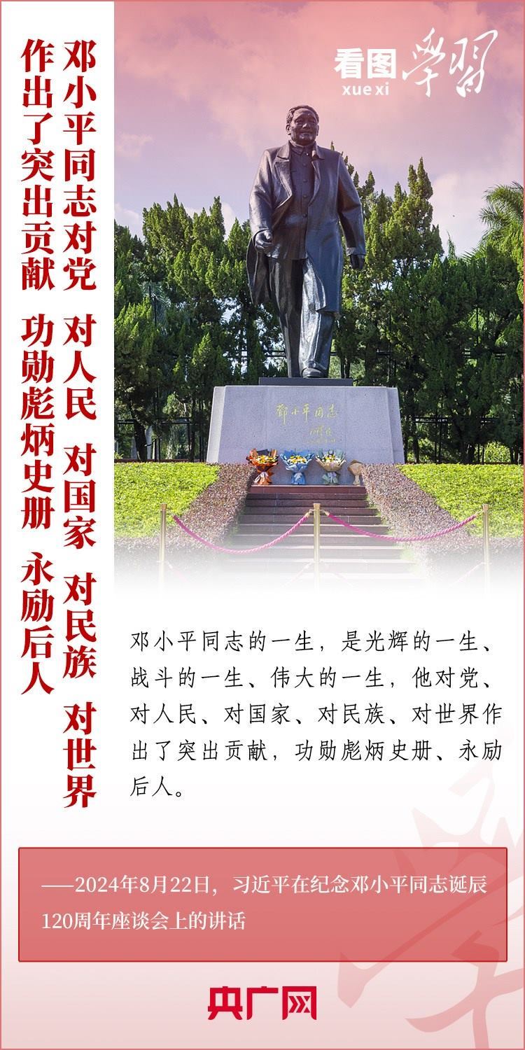 8月22日,習(xí)近平總書記在紀(jì)念鄧小平同志誕辰120周年座談會(huì)上發(fā)表重要講話指出,鄧小平同志的歷史功勛是全方位的、開創(chuàng)性的,對(duì)中國(guó)和世界的影響是深刻的、長(zhǎng)遠(yuǎn)的。總書記強(qiáng)調(diào),對(duì)鄧小平同志最好的紀(jì)念,就是把他開創(chuàng)的中國(guó)特色社會(huì)主義事業(yè)繼續(xù)推向前進(jìn)。我們要緊緊圍繞以中國(guó)式現(xiàn)代化全面推進(jìn)強(qiáng)國(guó)建設(shè)、民族復(fù)興偉業(yè)這個(gè)中心任務(wù),繼往開來(lái),奮發(fā)進(jìn)取。一起來(lái)學(xué)習(xí)!