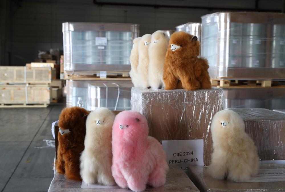??10月14日拍攝的運(yùn)抵中遠(yuǎn)海運(yùn)自有倉庫的“溫暖駝”產(chǎn)品。當(dāng)日,中遠(yuǎn)海運(yùn)承運(yùn)的第七屆進(jìn)博會(huì)海運(yùn)首單展品秘魯“溫暖駝”系列產(chǎn)品由洋山港碼頭運(yùn)抵中遠(yuǎn)海運(yùn)自有倉庫,隨后改換短駁廂式車送往客戶公司。新華社記者方喆攝