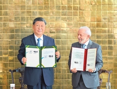 當?shù)貢r間十一月二十日上午,國家主席習近平同巴西總統(tǒng)盧拉在巴西利亞共同簽署并發(fā)表《中華人民共和國和巴西聯(lián)邦共和國關于攜手構建更公正世界和更可持續(xù)星球的中巴命運共同體的聯(lián)合聲明》。