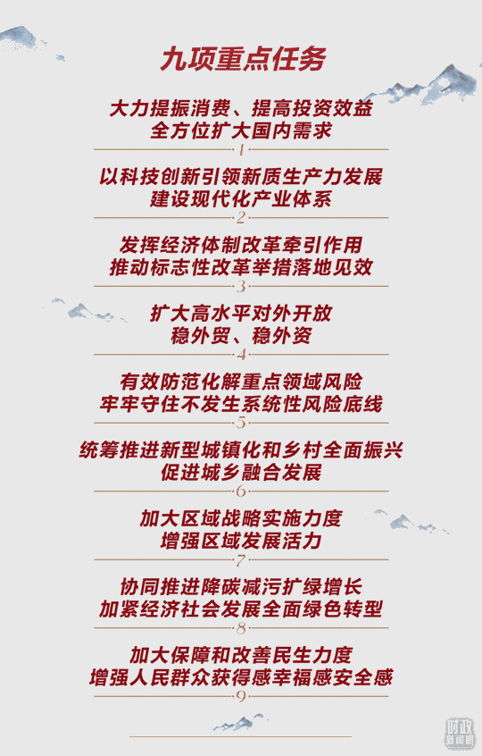 今年的中央經(jīng)濟工作會議確定,2025年要抓好9項重點任務。