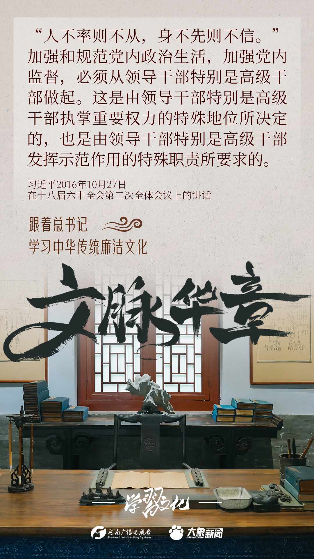 中華優(yōu)秀傳統(tǒng)文化蘊含著豐富的廉潔文化,習(xí)近平總書記曾指出:沒有中華優(yōu)秀傳統(tǒng)文化、革命文化、社會主義先進文化的底蘊和滋養(yǎng),信仰信念就難以深沉而執(zhí)著。總書記常常引經(jīng)據(jù)典,教育引導(dǎo)廣大黨員干部正心修身,涵養(yǎng)文化,守住為政之本。大象新聞分五期為您梳理,我們一起跟著總書記學(xué)習(xí)中華傳統(tǒng)廉潔文化。今天推出第四期。