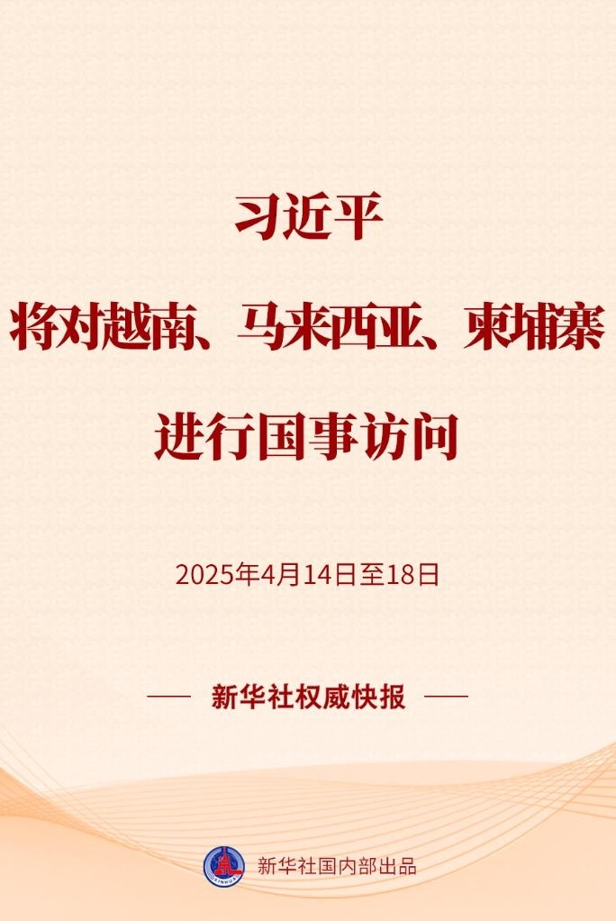 習(xí)近平將于4月14日至18日對越南、馬來西亞、柬埔寨進行國事訪問。