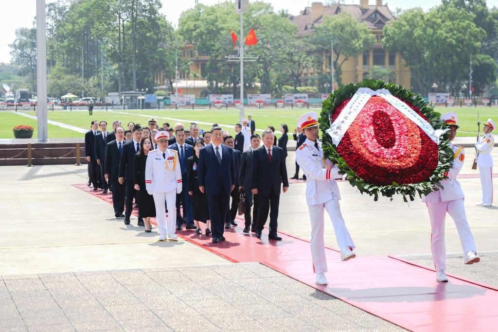 當(dāng)日下午,越共中央總書(shū)記蘇林為習(xí)近平舉行隆重歡迎儀式。