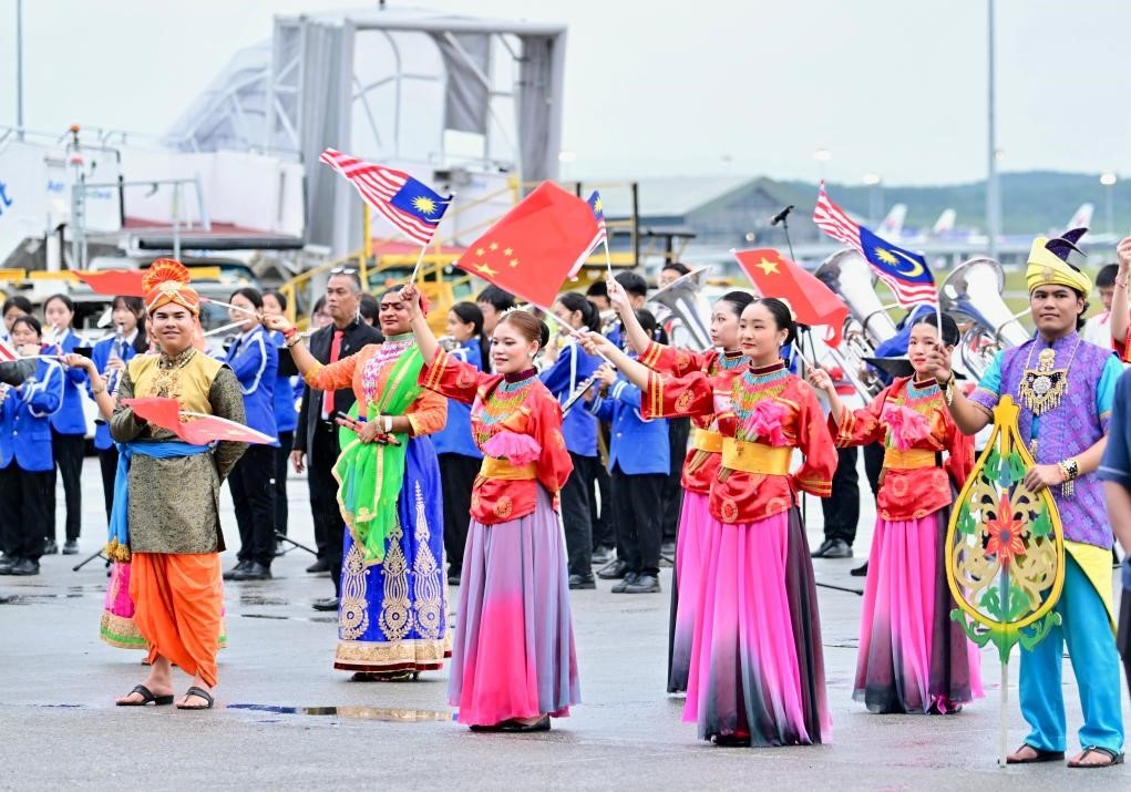 專機(jī)抵達(dá)吉隆坡國(guó)際機(jī)場(chǎng)時(shí),馬來(lái)西亞總理安瓦爾,外交部部長(zhǎng)穆罕默德,陪同部長(zhǎng)、交通部部長(zhǎng)陸兆福等高級(jí)官員熱情迎接。