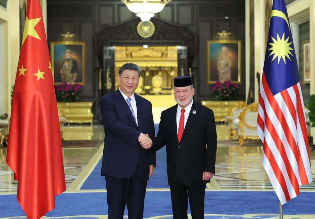 4月16日上午,易卜拉欣在馬來(lái)西亞國(guó)家王宮廣場(chǎng)為習(xí)近平舉行隆重歡迎儀式。