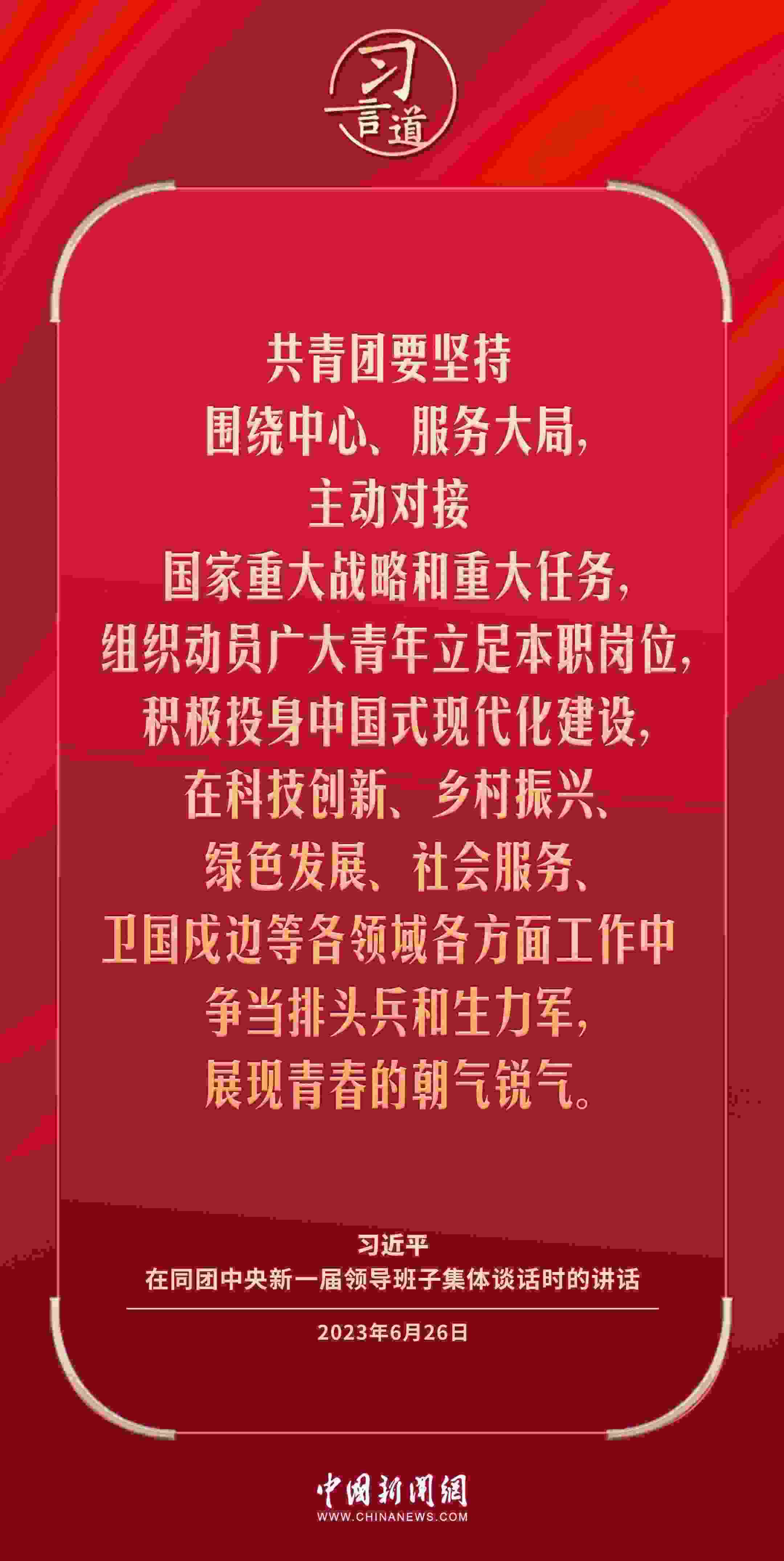5月1日出版的《求是》雜志發(fā)表中共中央總書記、國家主席、中央軍委主席習(xí)近平的重要文章《激勵新時代青年在中國式現(xiàn)代化建設(shè)中挺膺擔(dān)當(dāng)》。這是習(xí)近平總書記2023年6月26日在同團中央新一屆領(lǐng)導(dǎo)班子集體談話時講話的主要部分。