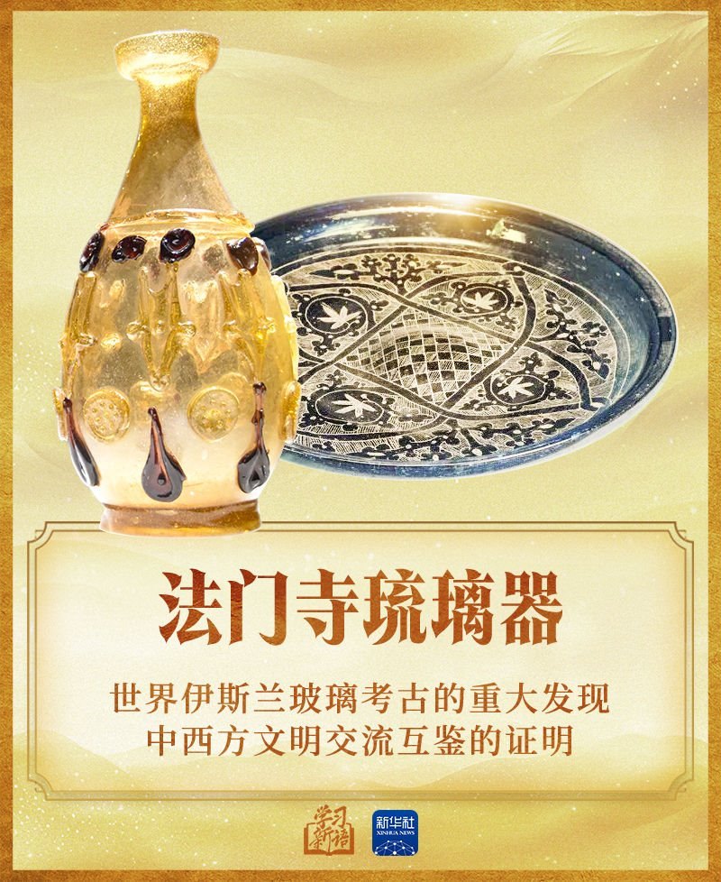 2014年3月,習近平主席在巴黎聯合國教科文組織總部發(fā)表演講時,特別提到了1987年在陜西法門寺地宮中出土的20件精美的琉璃器,這是唐代傳入中國的東羅馬和伊斯蘭的琉璃器。他說:“我在欣賞這些域外文物時,一直在思考一個問題,就是對待不同文明,不能只滿足于欣賞它們產生的精美物件,更應該去領略其中包含的人文精神”。