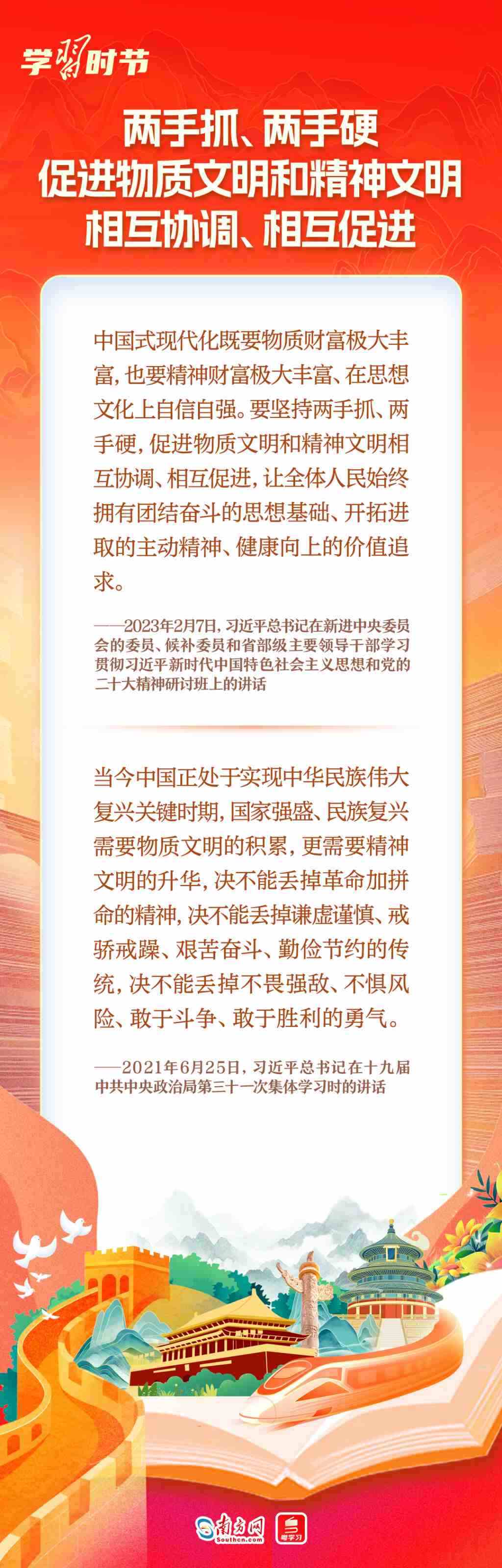 黨的十八大以來,黨中央持續(xù)推進(jìn)社會(huì)主義精神文明建設(shè),鞏固壯大社會(huì)主流價(jià)值,全民族精神面貌更加奮發(fā)昂揚(yáng),人民文明素養(yǎng)和社會(huì)文明程度顯著提升。習(xí)近平總書記高度重視社會(huì)主義精神文明建設(shè),近年來在不同場(chǎng)合就精神文明建設(shè)發(fā)表了一系列重要論述,為改進(jìn)創(chuàng)新精神文明建設(shè)工作、豐富人民群眾精神文化生活指明了方向、提供了遵循。我們整理了相關(guān)論述,與您繼續(xù)深入學(xué)習(xí)領(lǐng)會(huì)。