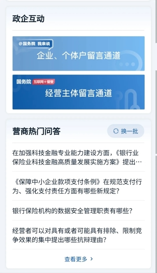 還有“政企互動(dòng)”和“營(yíng)商熱門(mén)問(wèn)答”,