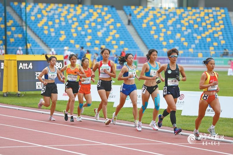 10月23日,內(nèi)蒙古運(yùn)動(dòng)員姜迎弟(左三)在女子萬(wàn)米聽(tīng)障比賽中與各路高手角逐。