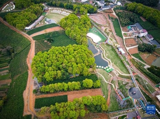 這是3月29日拍攝的諸暨市楓橋鎮(zhèn)陽春村陽春山月游樂度假村(無人機照片)。當(dāng)?shù)赝ㄟ^閑置荒山土地流轉(zhuǎn)發(fā)展鄉(xiāng)村旅游,幫助當(dāng)?shù)卮迕窈痛寮w增收。