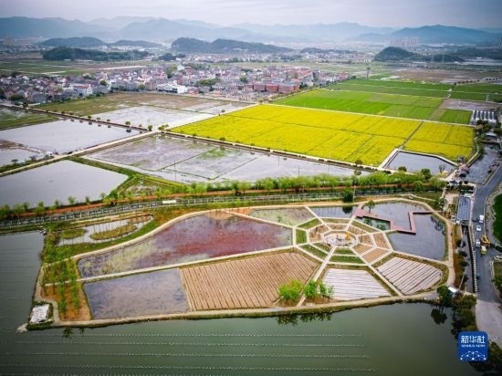 這是3月29日拍攝的諸暨市楓橋鎮(zhèn)杜黃新村農(nóng)耕體驗研學(xué)基地(無人機照片)。近年來,當(dāng)?shù)赝瞥鍪喾N農(nóng)事特色體驗項目,著力打造“田上杜黃”這一文旅品牌。