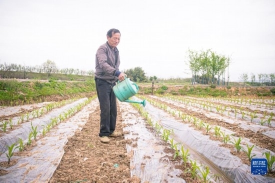 3月29日,在諸暨市楓橋鎮(zhèn)杜黃新村的農(nóng)耕體驗研學(xué)基地,村民為新苗澆水。近年來,農(nóng)旅融合發(fā)展給當(dāng)?shù)卮迕裥略隽?0多個就業(yè)崗位。