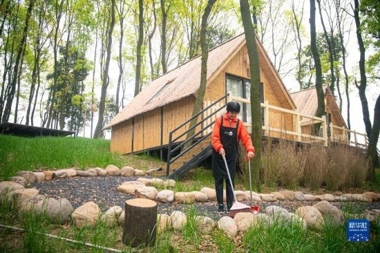 3月29日,諸暨市楓橋鎮(zhèn)陽春村村民在陽春山月游樂度假村內(nèi)工作。當(dāng)?shù)赝ㄟ^閑置荒山土地流轉(zhuǎn)發(fā)展鄉(xiāng)村旅游,幫助陽春村60名村民實現(xiàn)在家門口就業(yè)增收。
