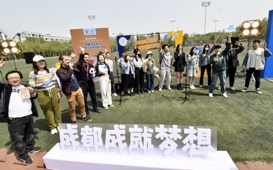 4月19日,成都第31屆世界大學(xué)生夏季運(yùn)動(dòng)會(huì)倒計(jì)時(shí)100天青春歌會(huì)活動(dòng)在清華大學(xué)舉行。新華社記者 李欣 攝