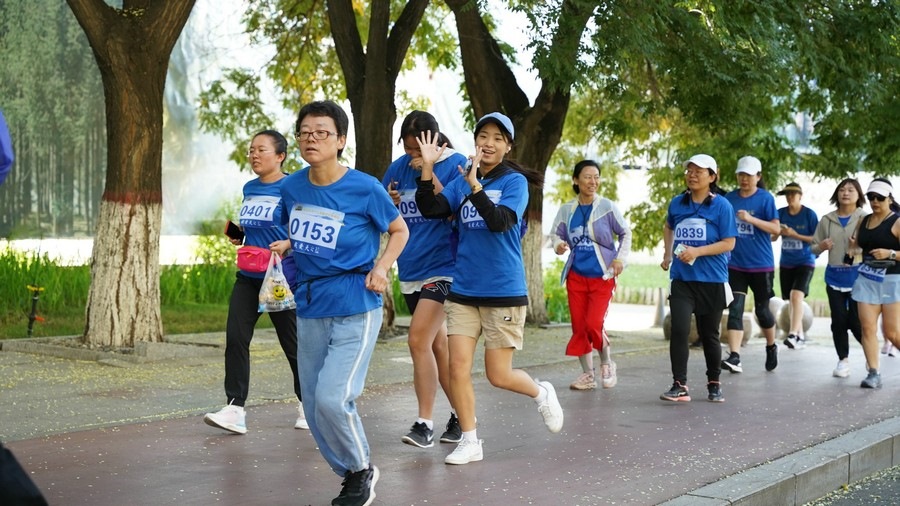 上午8時(shí)整,勞動(dòng)公園彩旗飄揚(yáng),1400名青城跑者聚集在此,隨著清脆的笛鳴響起,身著藍(lán)色運(yùn)動(dòng)服的青城跑者們奔跑在陽(yáng)光照射下的步道上,沿途盡賞青城美景,盡享運(yùn)動(dòng)健身之樂(lè)。