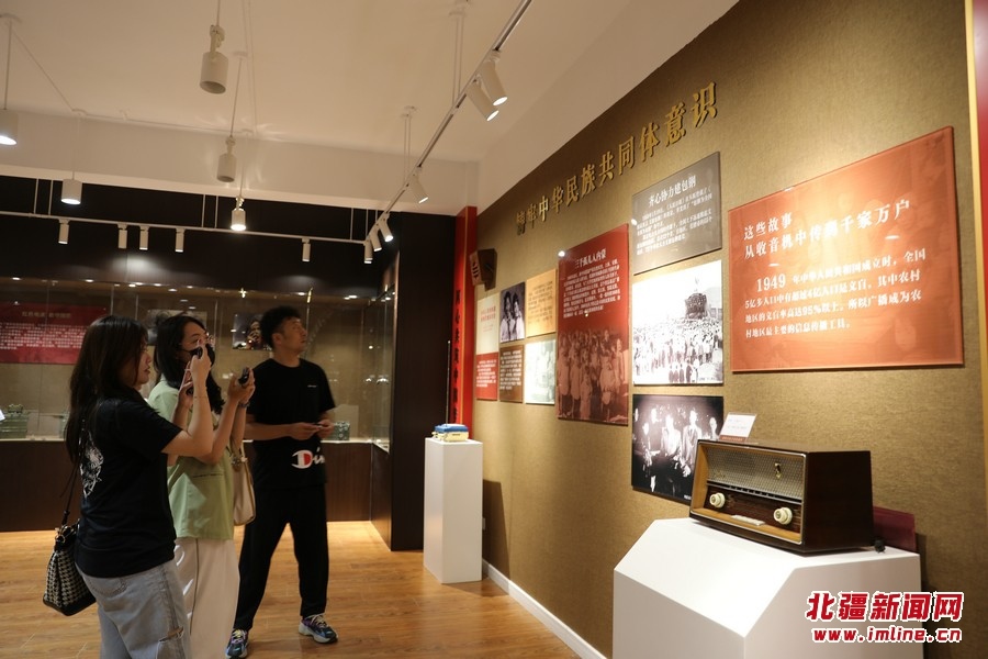 8月17日,游客在固陽縣收音機收藏館參觀
