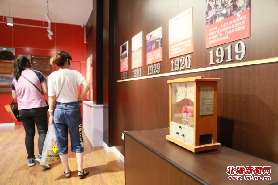 8月17日,講解員在向參觀者講解無線電歷史