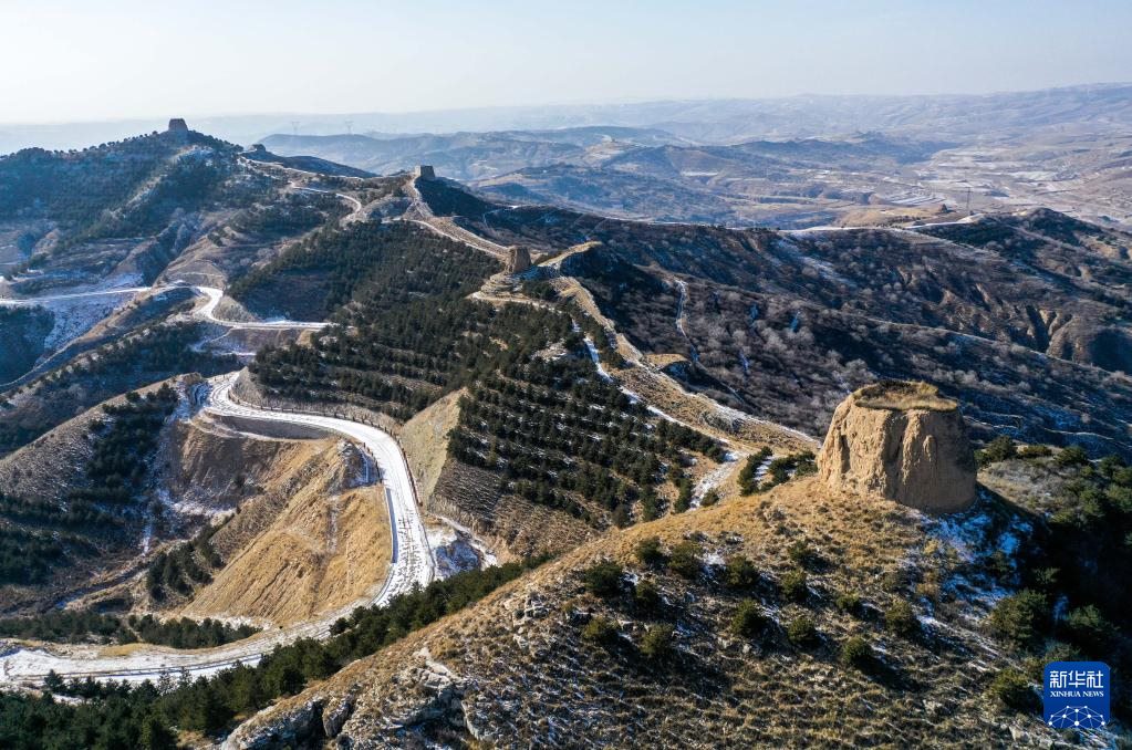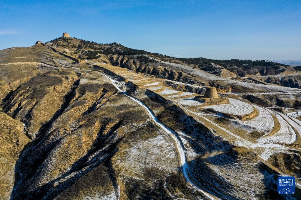 這是1月16日拍攝的內(nèi)蒙古清水河縣栜木塔長城(無人機照片)。