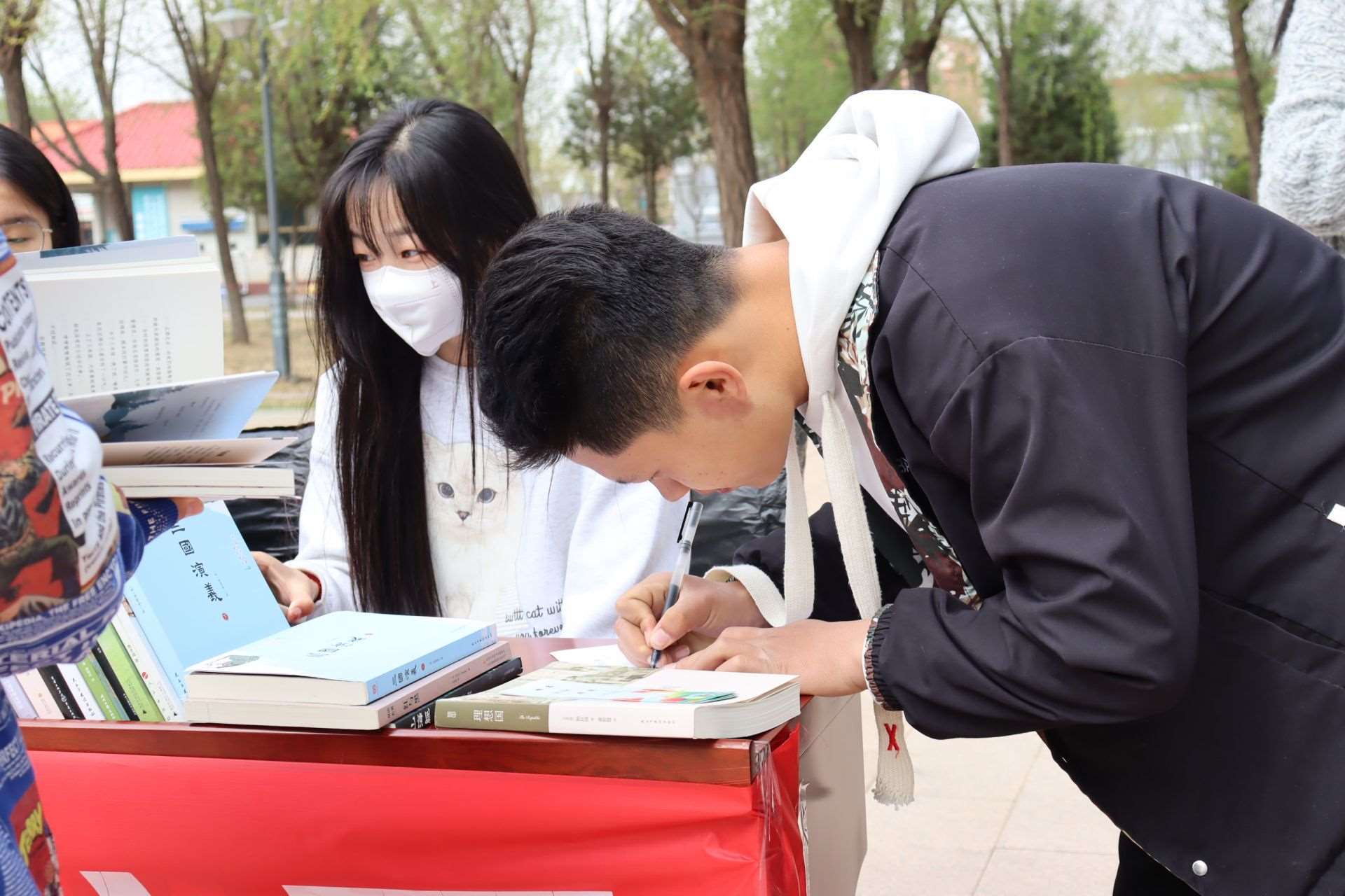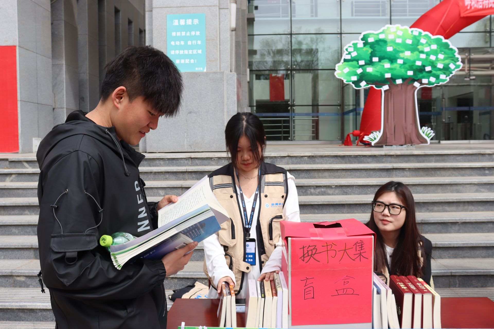 風和日麗,春暖花開。4月23日,第28個世界讀書日,呼和浩特民族學(xué)院在南區(qū)圖書館前開展“換書大集”活動,現(xiàn)場共設(shè)置18個換書展位,特別設(shè)立換書“盲盒區(qū)”,現(xiàn)場換書300余本,同學(xué)們廣泛參與,場面火熱。