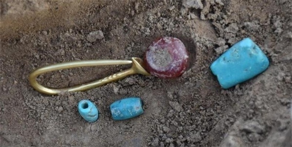 大坨頭文化聚落由內(nèi)、外兩重環(huán)壕圍合,外環(huán)壕直徑142至155米,寬8至12米,圍合面積約1.7萬平方米。內(nèi)環(huán)壕直徑70至72米,寬約18米,圍合面積約0.4萬平方米。在內(nèi)環(huán)壕內(nèi)、內(nèi)外環(huán)壕之間均發(fā)現(xiàn)有灰坑、窖穴、房址等遺跡。環(huán)壕聚落外東南方向發(fā)現(xiàn)27座豎穴土坑墓葬,布局規(guī)律,墓葬方向一致,部分墓葬還出土了靴形足彩陶尊等彩繪陶器、玉玦、綠松石項(xiàng)鏈、紅瑪瑙串珠、扣針形帶翼喇叭口金耳環(huán)等隨葬品,顯示了墓主較高的地位等級(jí)。穩(wěn)定同位素結(jié)果顯示,新宮遺址人群的食性以粟為主,肉食水平略高于二里頭遺址人群,并且不同等級(jí)墓葬的墓主人之間飲食結(jié)構(gòu)差異不大。該墓地的發(fā)現(xiàn),對(duì)于研究大坨頭文化的時(shí)空范圍、人群與族屬、喪葬習(xí)俗等提供了實(shí)物資料。