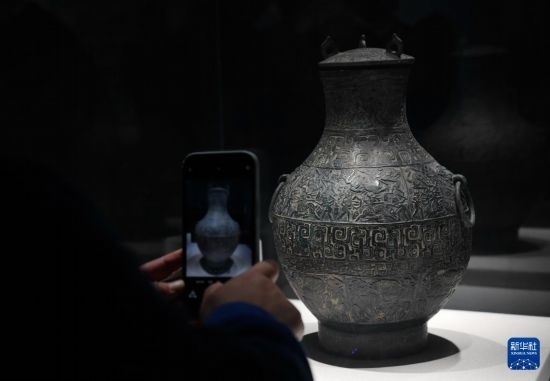 10月25日,觀(guān)眾在秦始皇帝陵博物院觀(guān)看成都博物館館藏文物狩獵紋銅壺。