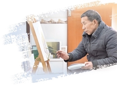 一手托著調(diào)色盤,一手舉著畫筆,眼前一個畫架,陳云發(fā)常常沉浸在自己的創(chuàng)作中。過去,陳云發(fā)以種田和做泥瓦工為生。藝術(shù)區(qū)建設(shè)期間,陳云發(fā)家中的幾間房子被張佰橋租來存放畫具。藝術(shù)家們創(chuàng)作時,陳云發(fā)也在旁邊看。后來,張佰橋送給陳云發(fā)一套畫具,“感興趣,就跟著學!”