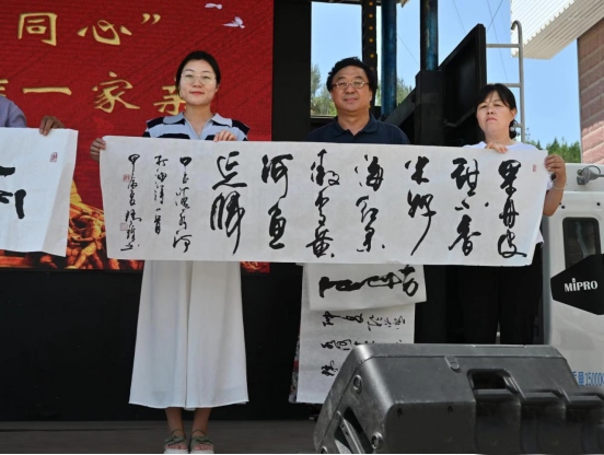 活動現(xiàn)場,內(nèi)蒙古昭君文化學(xué)會藝術(shù)團攜手清水河縣烏蘭牧騎和昆新社區(qū)黨員舞蹈隊,以文藝表演的形式,為社區(qū)居民奉獻了一場精彩紛呈的演出。同時,學(xué)會的書法家們現(xiàn)場揮豪潑墨,為社區(qū)和居民們書寫贈送書法作品,風格各異的書法作品,深得大家的贊賞和好評。