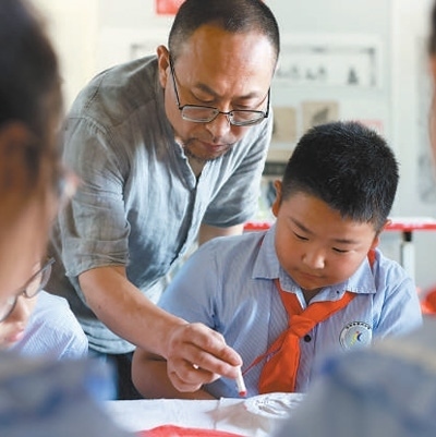 學(xué)生跟隨非遺傳承人學(xué)習(xí)體驗拓印技藝。楊 晨攝(人民視覺)