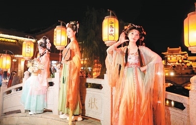 洛邑古城相關(guān)負責(zé)人介紹,景區(qū)致力于漢服文化的推廣與傳承,創(chuàng)意打造穿越新場景,豐富文旅新業(yè)態(tài)。景區(qū)有24個朝代的漢服形制、56個民族的服飾款式,游客可找到各自喜歡的款式,扮演喜愛的角色。燈獅畫橋、香羅幔天、文峰暮鼓等30余處場景,讓游客盡享“穿越自由”。洛邑古城還策劃了一系列創(chuàng)新主題活動,讓身著漢服的游客與“李白”“武則天”談古論今,與“嫦娥”“牡丹花神”近距離互動。