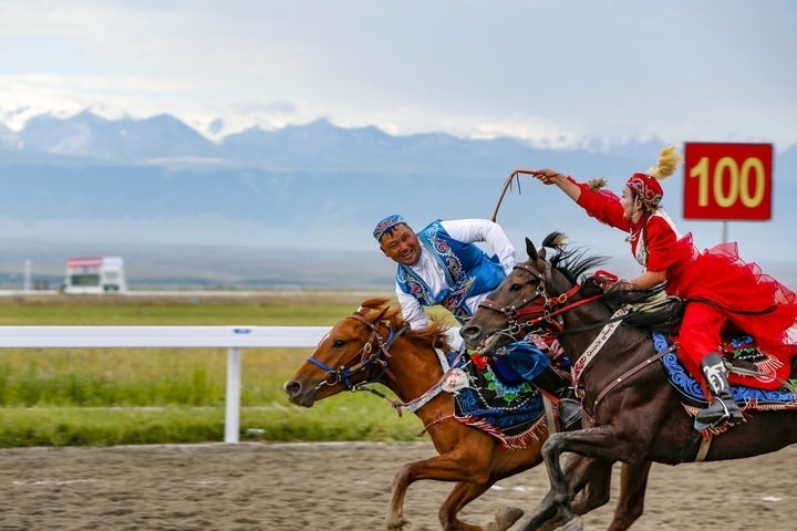 本屆運動會的表演項目具有鮮明的地域差異性和民族特色。巍峨雪山、廣袤草原,運動會馬上項目的比賽于今年7月在新疆維吾爾自治區(qū)昭蘇縣舉行。其中,“姑娘追”作為表演項目給人留下深刻印象?!肮媚镒贰痹仁枪_克族男女青年的一種戀愛方式,即姑娘騎馬追上心愛的青年,用皮鞭輕輕抽打他,來表達(dá)愛意。現(xiàn)如今,在各民族文化的互鑒融通中,“姑娘追”已成為一項饒有風(fēng)趣的群眾性體育活動,不斷傳承發(fā)展。