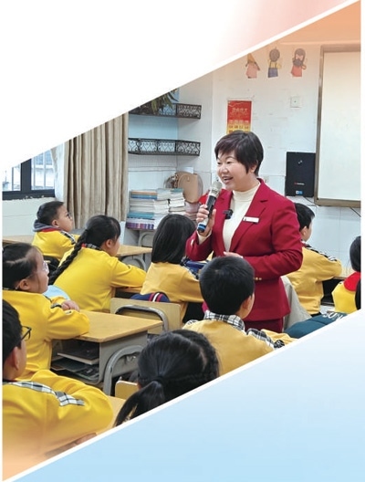 中央紅軍長征出發(fā)紀(jì)念館講解員鐘敏在于都縣城關(guān)小學(xué)進(jìn)行宣講。