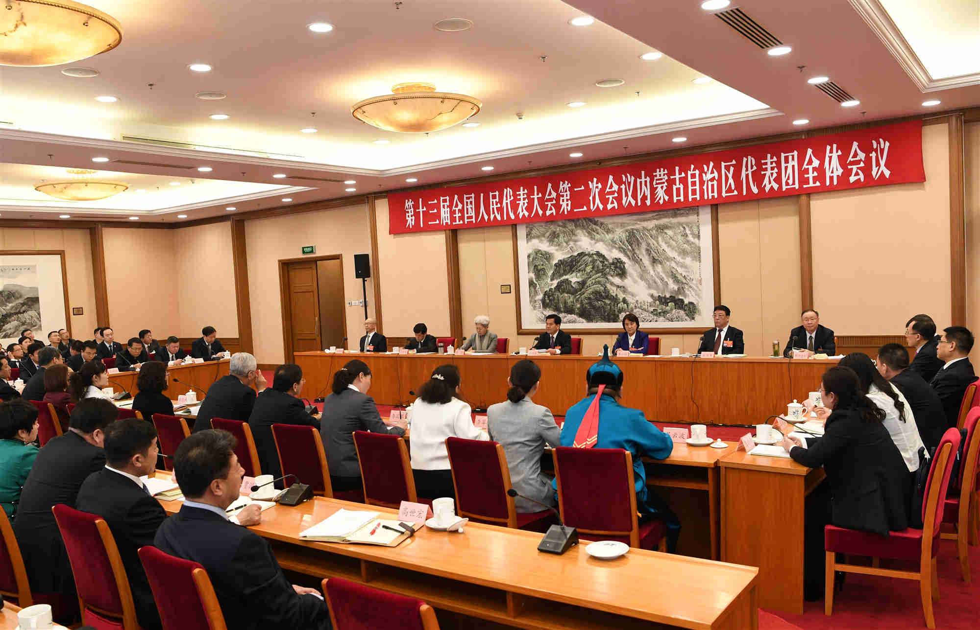 按照大會統(tǒng)一安排,3月3日下午,出席十三屆全國人大二次會議的內(nèi)蒙古代表團在駐地召開全團會議。
