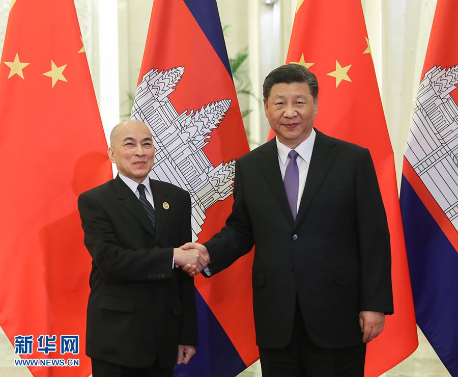 國家主席習(xí)近平14日在人民大會堂會見柬埔寨國王西哈莫尼。