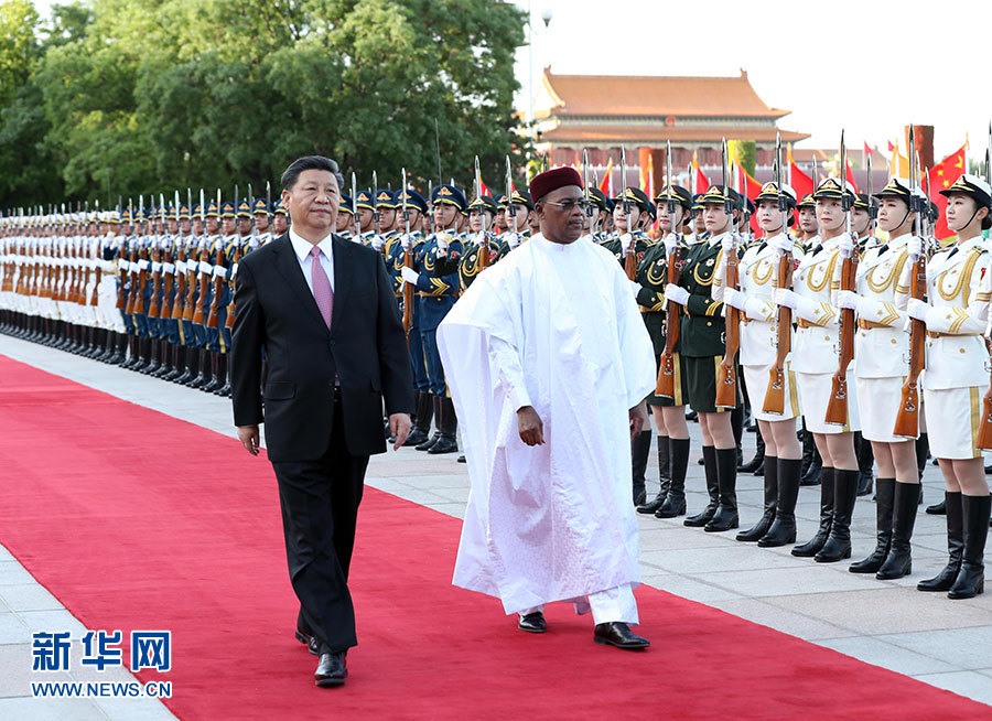 5月28日,國家主席習(xí)近平在北京人民大會堂同尼日爾總統(tǒng)伊素福舉行會談。這是會談前,習(xí)近平在人民大會堂東門外廣場為伊素福舉行歡迎儀式。