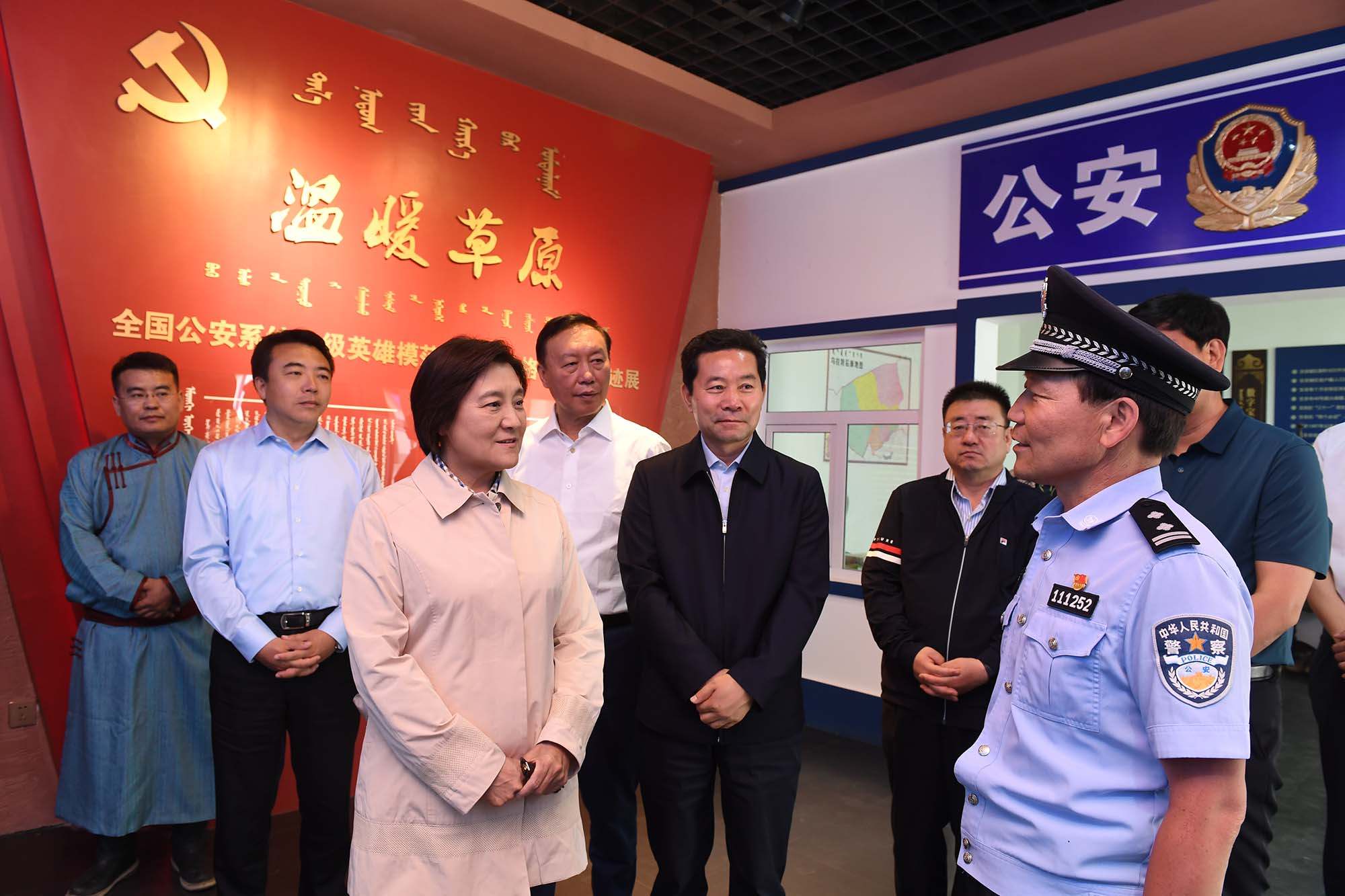 烏拉特后旗公安局潮格溫都爾鎮(zhèn)派出所民警寶音德力格爾被授予“全國(guó)公安系統(tǒng)一級(jí)英雄模范”榮譽(yù)稱號(hào)。布小林走進(jìn)寶音德力格爾事跡館參觀,與寶音德力格爾親切交談,對(duì)他舍小家顧大家、為人民群眾無(wú)私奉獻(xiàn)的精神給予充分肯定。