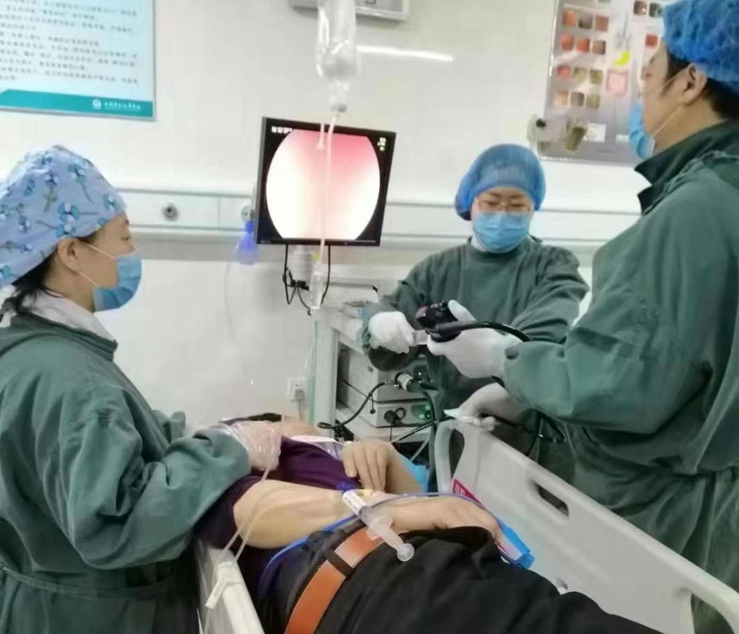 麻醉科王虹和腔鏡室王一平大夫安娜護(hù)士進(jìn)行無(wú)痛胃鏡檢查