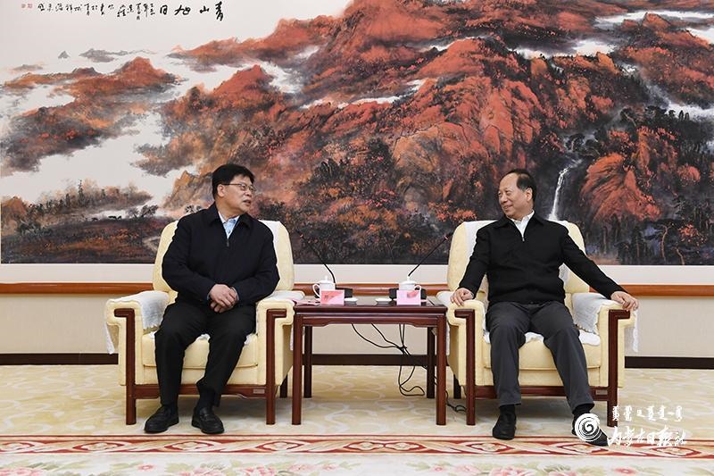 自治區(qū)領(lǐng)導(dǎo)楊偉東、張韶春及有關(guān)部門(mén)負(fù)責(zé)同志參加會(huì)見(jiàn)。(內(nèi)蒙古日?qǐng)?bào)記者 章奎)