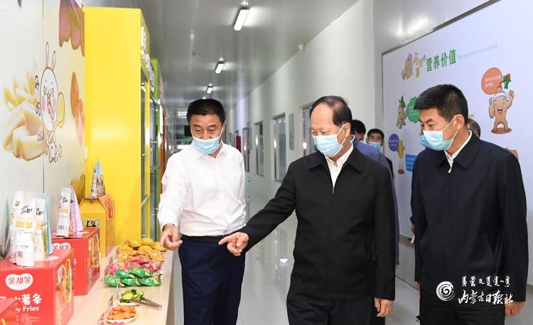 7月2日,自治區(qū)黨委書記、人大常委會主任石泰峰深入烏蘭察布市察右前旗內蒙古薯都凱達食品有限公司,了解京蒙對口幫扶企業(yè)馬鈴薯產品生產銷售情況。內蒙古日報社融媒體記者 袁永紅 攝