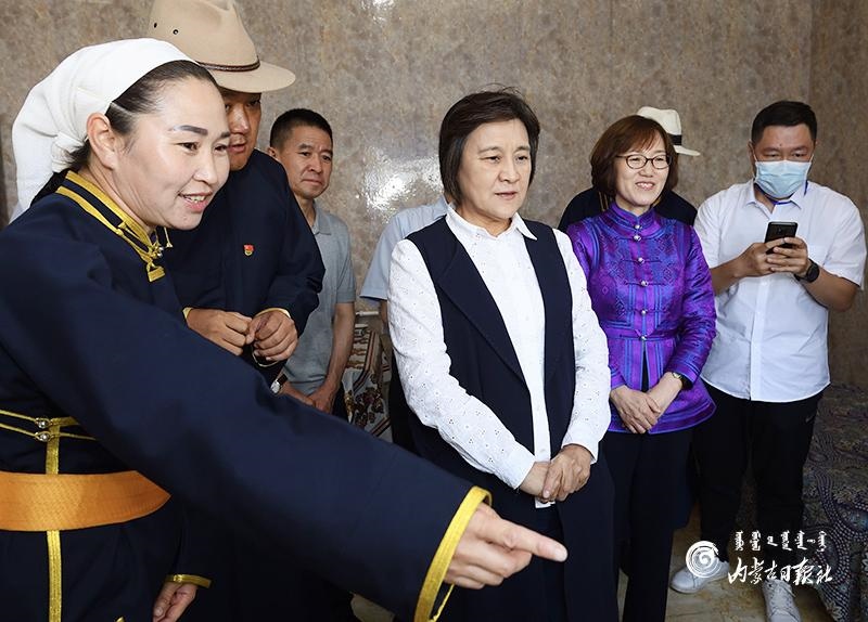 自治區(qū)黨委副書(shū)記、自治區(qū)主席布小林來(lái)到呼倫貝爾市新巴爾虎右旗芒來(lái)嘎查牧戶(hù)滿(mǎn)達(dá)家,了解智慧牧場(chǎng)等設(shè)備使用情況。內(nèi)蒙古日?qǐng)?bào)記者 金泉 攝