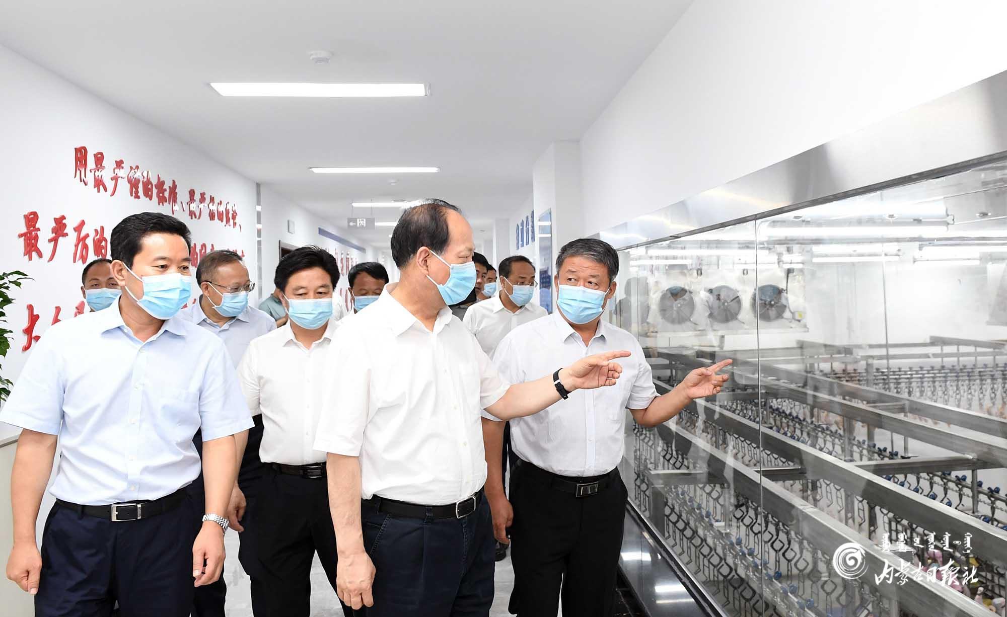 8月18日,自治區(qū)黨委書記、人大常委會主任石泰峰來到巴彥淖爾市五原縣潤海源8000萬只肉雞屠宰加工廠,了解經(jīng)營情況。內(nèi)蒙古日報記者 袁永紅 攝
