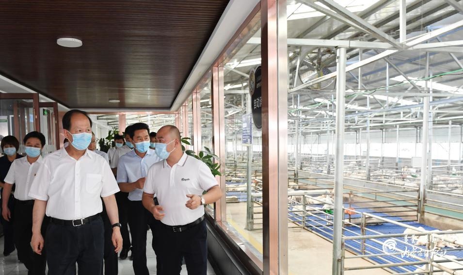 8月18日,石泰峰書記在巴彥淖爾市五原縣金草原現(xiàn)代肉羊標準化養(yǎng)殖園區(qū),了解產(chǎn)業(yè)扶貧情況。內(nèi)蒙古日報記者 袁永紅 攝