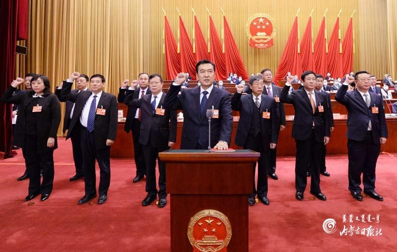 1月30日上午,內蒙古人民會堂國徽高懸,五星紅旗鮮艷奪目,自治區(qū)十三屆人大四次會議新當選人員憲法宣誓儀式在這里舉行。