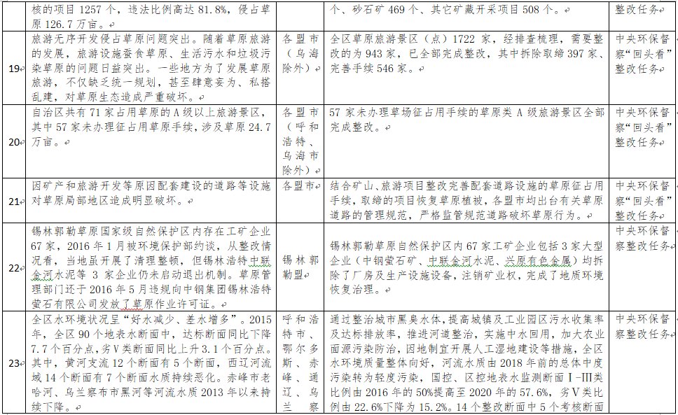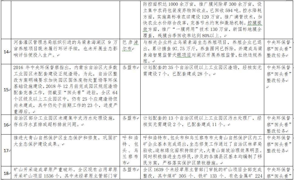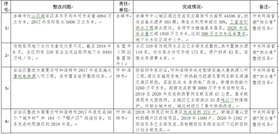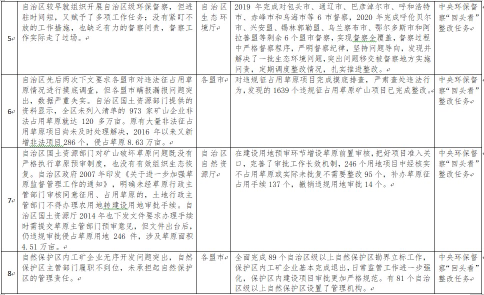 中央環(huán)境保護督察以來,自治區(qū)各級黨委政府及相關部門高度重視反饋意見整改工作,貫徹落實習近平生態(tài)文明思想的自覺性和主動性顯著增強,采取強有力措施積極推動整改工作,整改工作取得階段性成果。近期部分整改任務已通過自治區(qū)相關委辦廳局驗收,現(xiàn)予以公示,公示期2021年2月5日至2月9日,未提出異議的整改任務給予銷號(聯(lián)系電話:0471-4632171)。