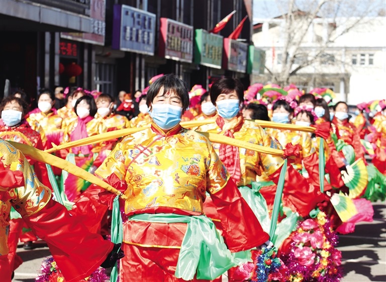 2月17日,呼和浩特市賽罕區(qū)黃合少鎮(zhèn)居民正在扭秧歌。當(dāng)日,黃合少鎮(zhèn)舉辦社火表演,各村秧歌隊(duì)踏著鼓點(diǎn),舞動(dòng)紅綢,為觀眾獻(xiàn)上了一臺(tái)精彩紛呈的秧歌盛宴,歡度春節(jié)。(內(nèi)蒙古日?qǐng)?bào)記者 孟和朝魯 攝)