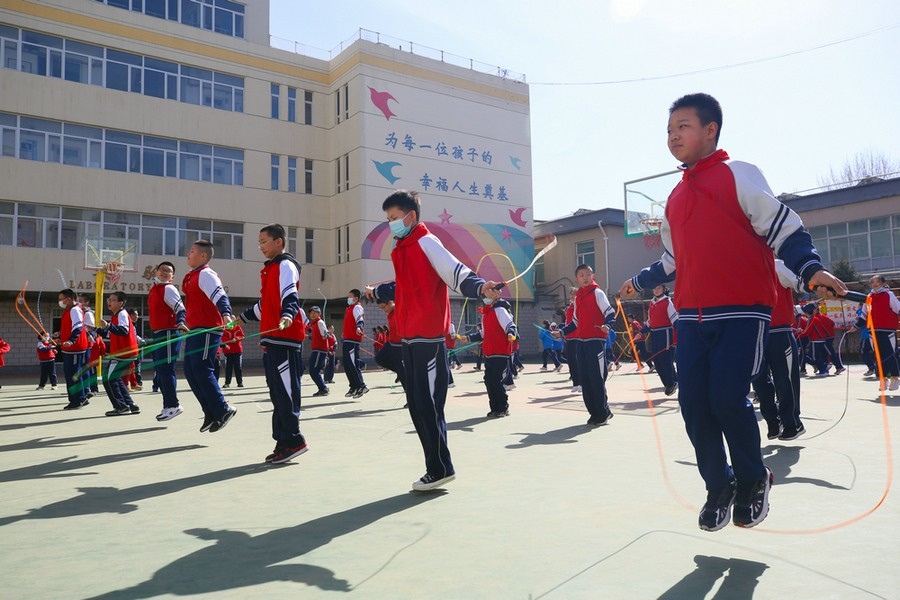 “為每一位孩子的幸福人生奠基體現(xiàn)在多個(gè)方面,身體健康是基礎(chǔ),學(xué)校結(jié)合實(shí)際合理安排體育課程,‘以體育人’,為學(xué)生的全面發(fā)展奠基?!焙艉秃铺厥械谒闹袑W(xué)副校長婁淑華說。