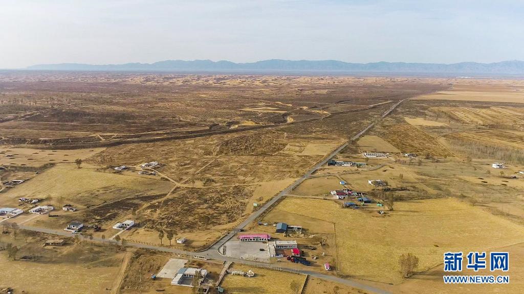 這是位于庫布其沙漠邊緣的內(nèi)蒙古達(dá)拉特旗官井村(4月3日攝,無人機(jī)照片)。新華社記者 張晟 攝
