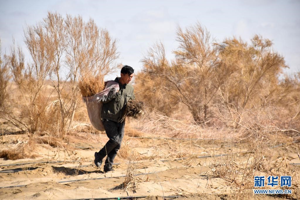 在且末縣,當(dāng)?shù)卦谥袊茖W(xué)院新疆生態(tài)與地理研究所的技術(shù)支持下,嘗試種植梭梭和大蕓。梭梭耐鹽堿、耐干旱,能防風(fēng)固沙;寄生在梭梭根部的大蕓具有很高的藥用價(jià)值,能讓沙漠產(chǎn)出經(jīng)濟(jì)價(jià)值。通過“承包治理、開發(fā)經(jīng)營、收益歸己”的招商原則,目前已吸引10家企業(yè)參與進(jìn)來,走出一條生態(tài)與經(jīng)濟(jì)同步發(fā)展的新路。