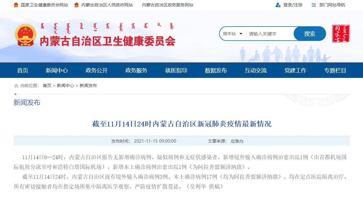 內(nèi)蒙古自治區(qū)衛(wèi)生健康委員會(huì)網(wǎng)站截圖