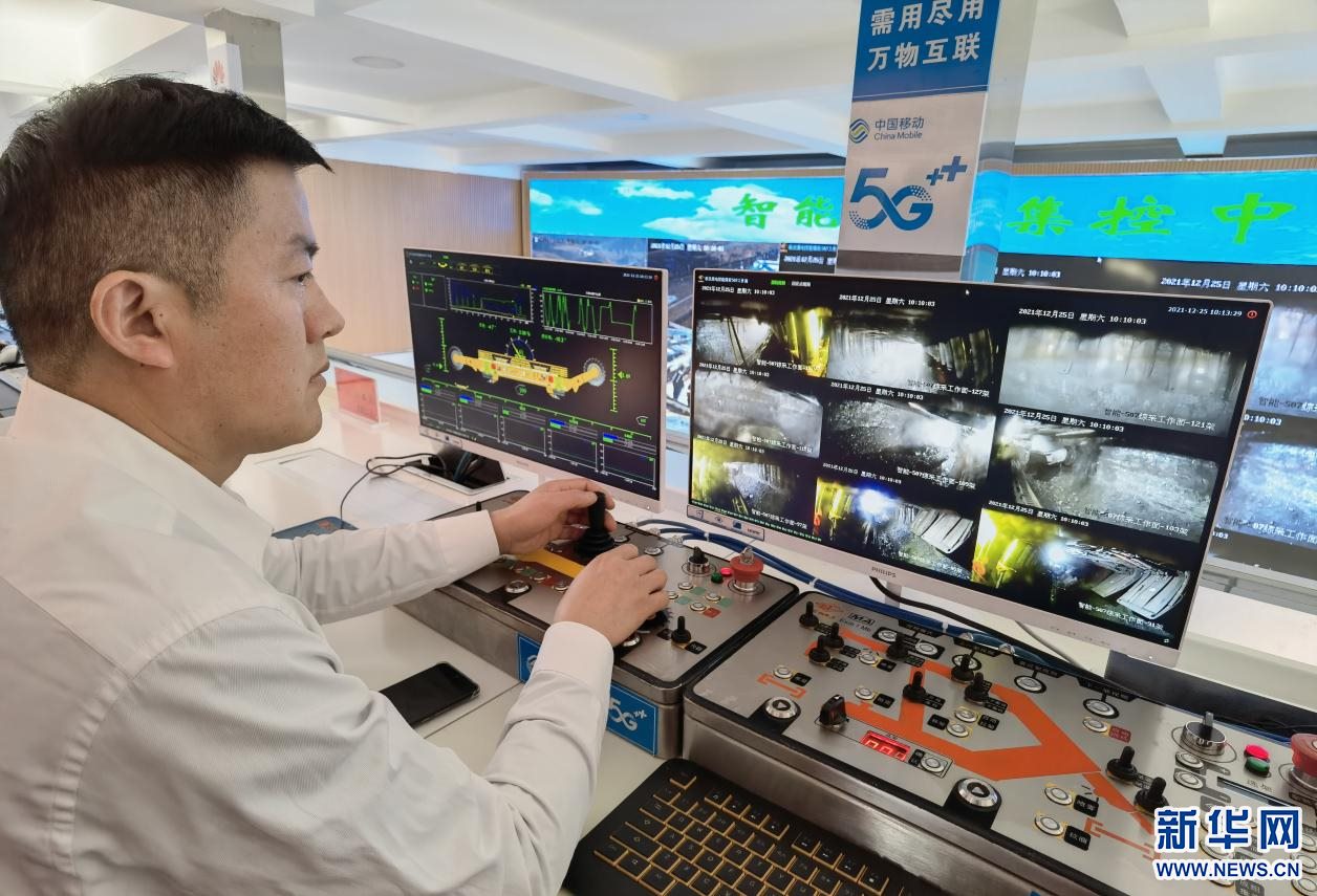 在智能調(diào)度集控中心,1名井下采煤掘進(jìn)機(jī)司機(jī)坐在辦公室里,看著顯示器上實(shí)時(shí)回傳的井下畫面,手握操縱桿遠(yuǎn)距離控制井下的采煤掘進(jìn)機(jī)進(jìn)行掘采。據(jù)介紹,智能集控中心僅需8個(gè)人,就可以幫助煤礦實(shí)現(xiàn)全年800萬噸產(chǎn)量。